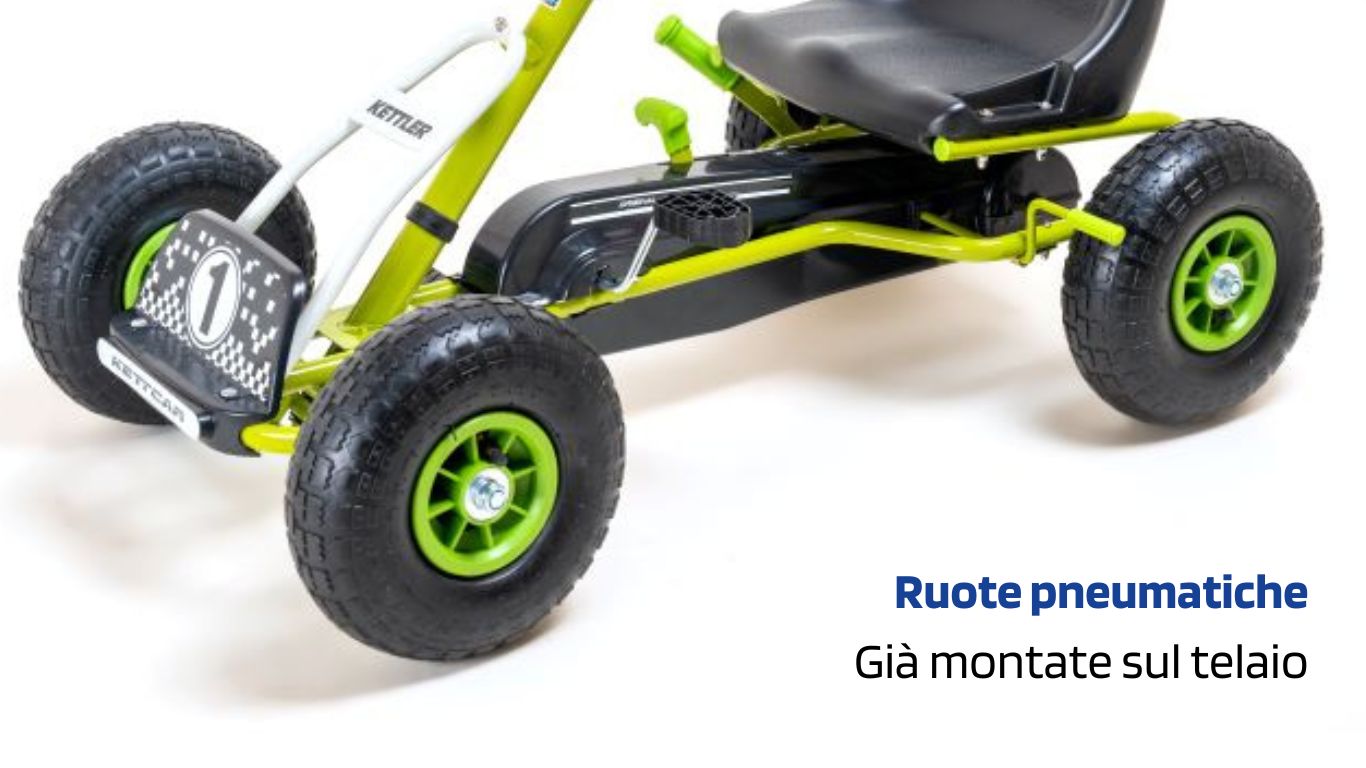 Grazie ai pneumatici ad aria da 10 pollici, il Kettcar offre una guida piacevolmente fluida, anche su ghiaia, erba o asfalto.