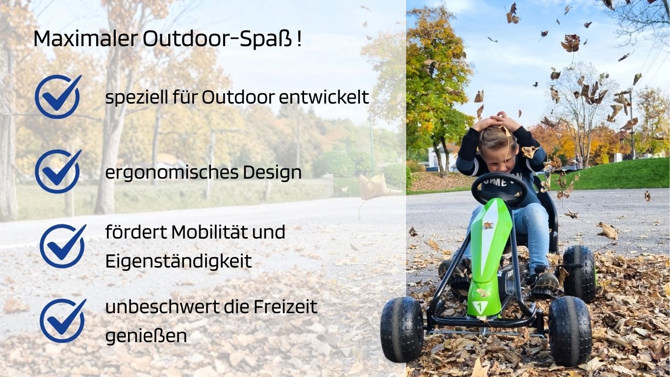 Leichtes und wendiges Kettcar: Speziell für spielerische Abenteuer im Garten, Hof oder auf dem Spielplatz entwickelt. Geeignet für Kinder ab 3 Jahren: Ideal für Kinder ab 3 Jahren, maximales Gewicht 35 kg. Leicht und handlich: Mit nur 9,6 kg Produktgewicht und den Maßen 105,5 × 66 × 60 cm leicht zu bewegen und überall einsetzbar. Kunststoffreifen: Wartungsfreie Reifen für unkomplizierten Fahrspaß auf unterschiedlichen Untergründen. Sicherheitsmerkmale: Ausgestattet mit Handbremse für zuverlässiges Anhalten. Zwei-Gang-Schalthebel: Pedalkupplung und Freilaufkupplung sorgen für ein abwechslungsreiches Fahrerlebnis. 3-fach verstellbarer Sitz: 3-fach verstellbarer Sitz wächst mit dem Kind mit und sorgt für eine komfortable Sitzposition. Montage: Rahmen und Räder bereits vormontiert – schnell einsatzbereit. Geprüfte Sicherheit: Getestet nach EN71-1, -2 und -3, gewährleistet hohe Sicherheitsstandards.Funktionen